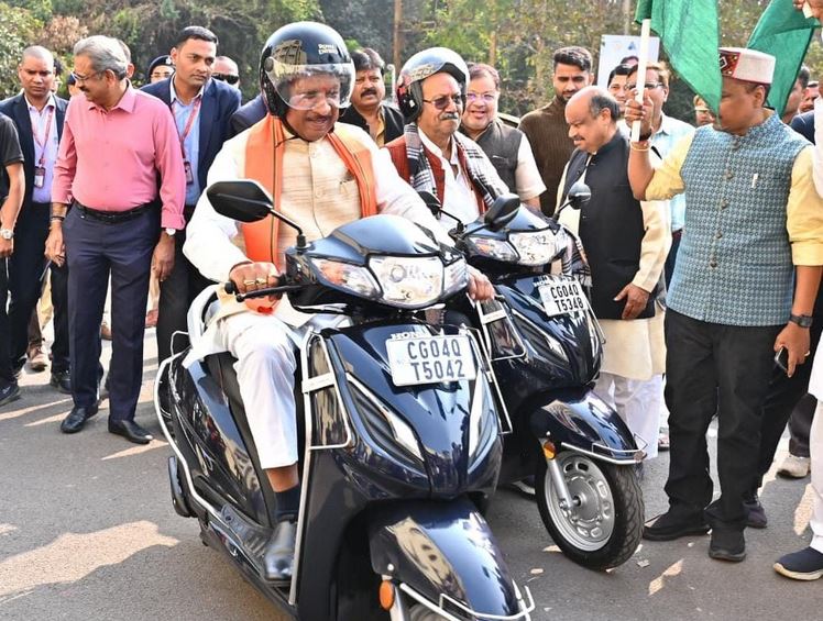 मुख्यमंत्री श्री साय ने सड़क सुरक्षा का संदेश देते हुए स्वयं हेलमेट पहनकर बाइक चालकों के दल के साथ स्कूटी चलाई।कार्यक्रम में मुख्यमंत्री श्री साय ने राजधानी रायपुर के पंडरी में आधुनिक लाइसेंस सेंटर कार्यालय भवन पंडरी का भूमिपूजन और प्रदेश भर में मुख्यमंत्री ग्रामीण बस योजना के तहत 12 नवीन मार्गों में 12 नवीन बसों का शुभारंभ किया।