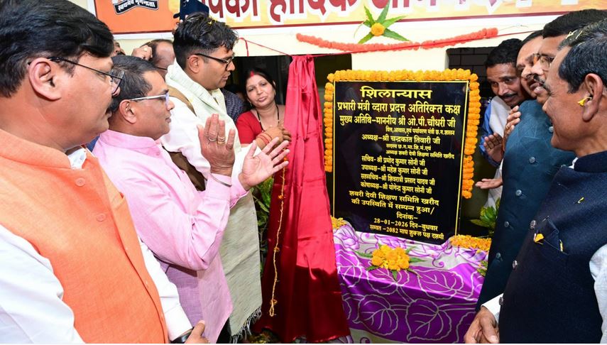 वित्त मंत्री श्री ओ.पी. चौधरी ने सरस्वती शिशु मंदिर उच्चतर माध्यमिक विद्यालय, खरौद में 8 लाख रुपये की लागत से निर्मित होने वाले अतिरिक्त कक्ष का शिलान्यास किया। इस अवसर पर विद्यार्थियों को संबोधित करते हुए उन्होंने कहा कि लक्ष्य निर्धारित कर निरंतर परिश्रम करने से सफलता निश्चित रूप से प्राप्त होती है।