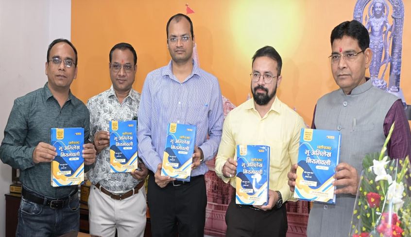 रायपुर, छत्तीसगढ़ में आज डिजिटल शासन की दिशा में एक महत्वपूर्ण पहल की गई। राजस्व मंत्री श्री टंक राम वर्मा ने आज निवास कार्यालय में डिजिटल किसान किताब का औपचारिक शुभारंभ किया। इस अवसर पर उमेश कुमार पटेल और श्रीकांत वर्मा द्वारा लिखित छत्तीसगढ़ भू-अभिलेख नियमावली भाग 1से 4 पुस्तक का भी विमोचन किया गया। यह पहल राज्य के किसानों और भूमिधारकों को आधुनिक, सरल और त्वरित सेवाएं उपलब्ध कराने में महत्वपूर्ण भूमिका अदा करेगा। इस अवसर पर संचालक भू अभिलेख श्री विनीत नन्दनवार सहित संबंधित अधिकारी-कर्मचारी उपस्थित थे।